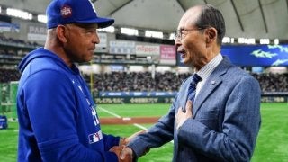 ロバーツ監督が歩み寄って、じっくりと話し込んだ王貞治氏。(C)Getty Images 日本球界のレジェンドとの邂逅に、…