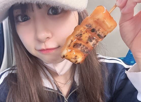 そして「またみんなに会える日を楽しみに今日から頑張ります💓」と意気込むとともに、ピースをする正鋳と、俵型が特徴的なお団子を手にした自身の写真を投稿した。移動中ということで、オフな雰囲気の姿がまた可愛らしい。