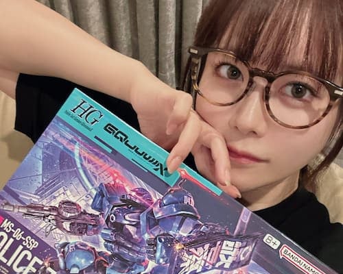 「軍警ザク!!!!!!!!! まだジークアクスも完成してないのに!!!くぅ」と綴り1枚の写真を投稿。自身が趣味とするガンプラの新しい物を買ったことをSNSにシェアした。ジークアクスもガンプラで、現在東雲が製作中のものだ。