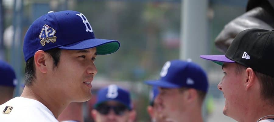 この日は「ジャッキー・ロビンソンデー」。ドジャース、ロッキーズは試合前にドジャースタジアム中堅後方のロビンソンの銅像前に集まり、背番号「42」のユニホームを着た大谷とモニアックは再会となった。