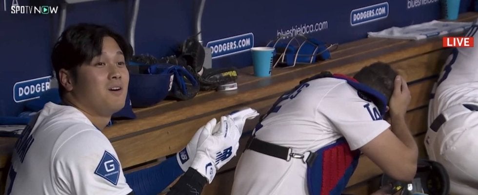 ドジャースの大谷翔平投手が、まさかのハプニングに襲われた。ダグアウトに飛んできた打球が背中に直撃。その際に見せた驚きの表情にファンたちが反応している。