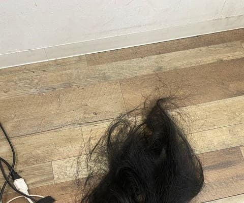「美容院行ったんやけど、うち丸刈りなってへんこれ???」という言葉とともに、床に落ちた大量の髪の毛の写真を投稿した。