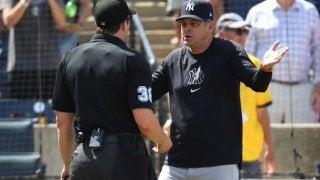 ジャッジの打席のときにブーン監督が審判に抗議した(C)Getty Images ヤンキースのアーロン・ブーン監督が、現地…