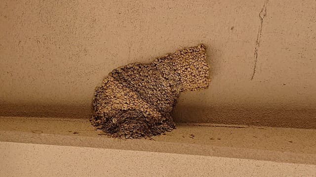 一般的なツバメの巣の形状とは異なり、入口部分がトンネルのようになっているのが特徴的だ。