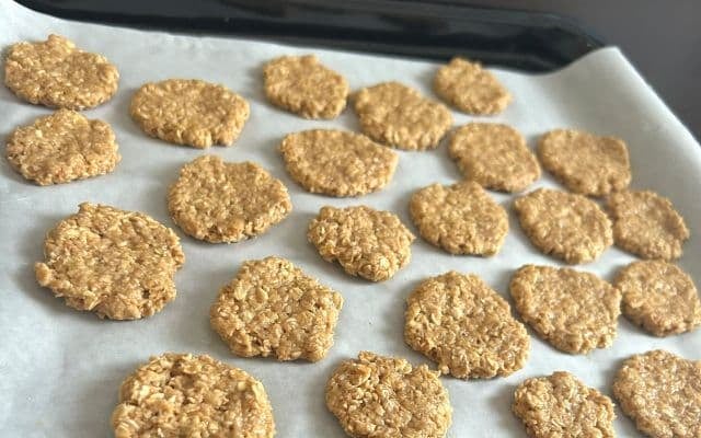 天板いっぱいに並んだクッキーは、素朴でザクザク感のある見た目が印象的。