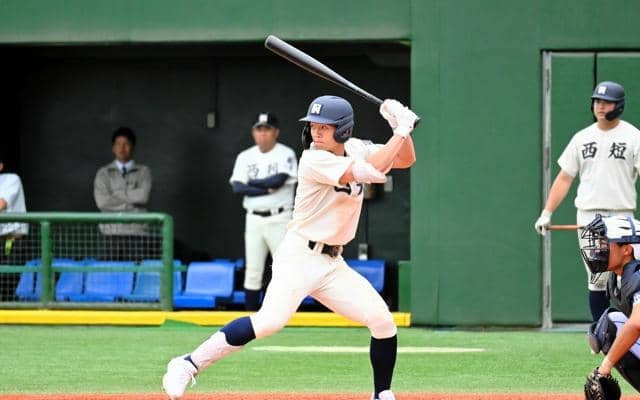 1点をリードされて迎えた延長タイブレークの十二回裏1死満塁の好機。西日本短大付の斉藤大将選手(3年)は「ここで自分が打つ」と強い気持ちで打席に入った。初球の直球をはじき返すと、鋭い打球が中前に弾んだ。逆転のサヨナラ2点適時打。チームを決勝進出に導く一打に「めちゃくちゃうれしかった」と試合後、満面の笑みを見せた。