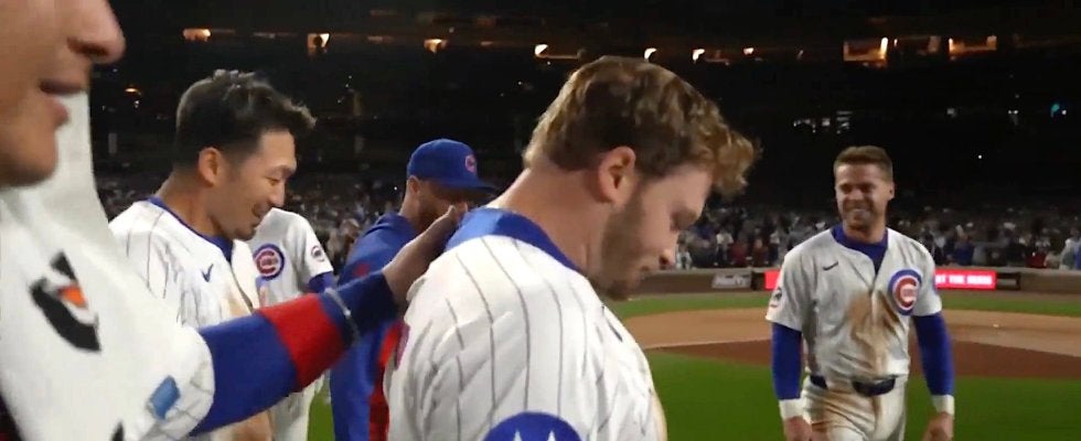 カブスの鈴木誠也外野手が「3番・DH」でスタメン出場したドジャース戦は、延長タイブレークの末にハップのサヨナラタイムリーでカブスが劇的勝利。歓喜の瞬間、勝利の立役者のユニフォームが破れそうなほど引っ張ってはしゃぐ鈴木の姿が中継に映し出され、SNSでも注目を集めていた。