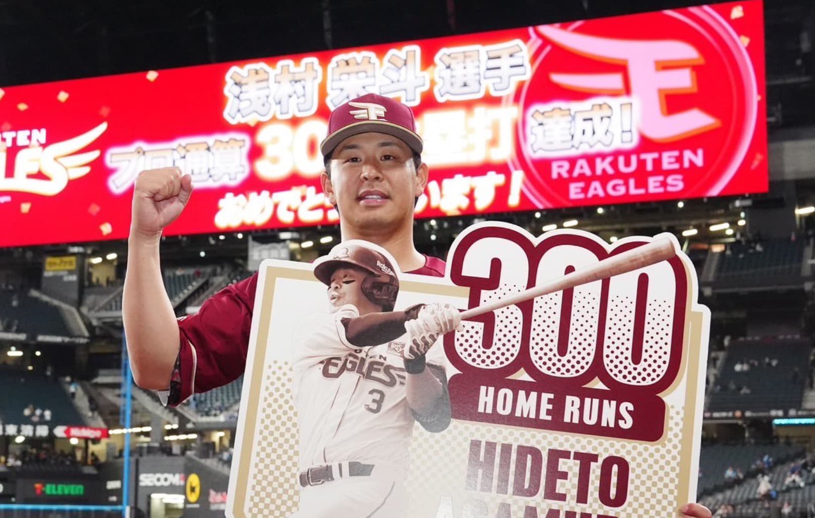 「栄斗300号おめでとう」と綴り、画像を投稿。楽天の後輩、浅村栄斗に祝福のメッセージを送った。