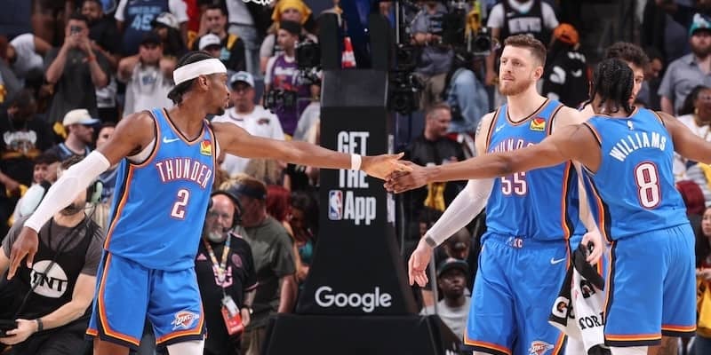 試合終了残り2分39秒からチェット・ホルムグレン、ジェイレン・ウィリアムズの連続得点で逆転。そのまま逃げきりに成功し、114-108で勝利を収め、1回戦突破に王手をかけた。