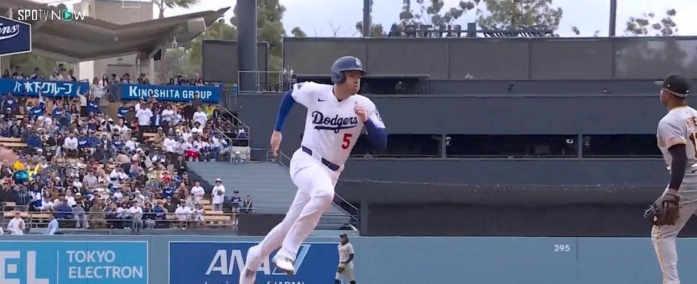 ドジャースの大谷翔平投手が「1番・DH」でスタメン出場したパイレーツ戦で初回、フリーマンが一塁から一気に激走して逆転のホームを踏み、本拠地を沸かせた。
