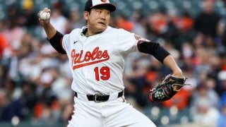 菅野がヤンキース打線相手に堂々たるピッチングを見せている(C)Getty Images オリオールズの菅野智之は28日(…