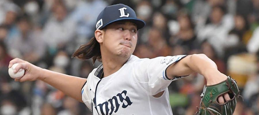 初回に小深田、村林に連続四球を与えピンチを招くが、浅村を空振り三振、鈴木大を中飛、渡邊佳を三ゴロに打ち取り、流れをつかんだ。2回には先頭の阿部に右中間を破る二塁打を浴びるも、落ち着いて後続を断つなど、変化球を主体に粘りの投球を披露。6回を88球、4安打2奪三振の無失点に抑え、勝利投手の権利を得て交代した。