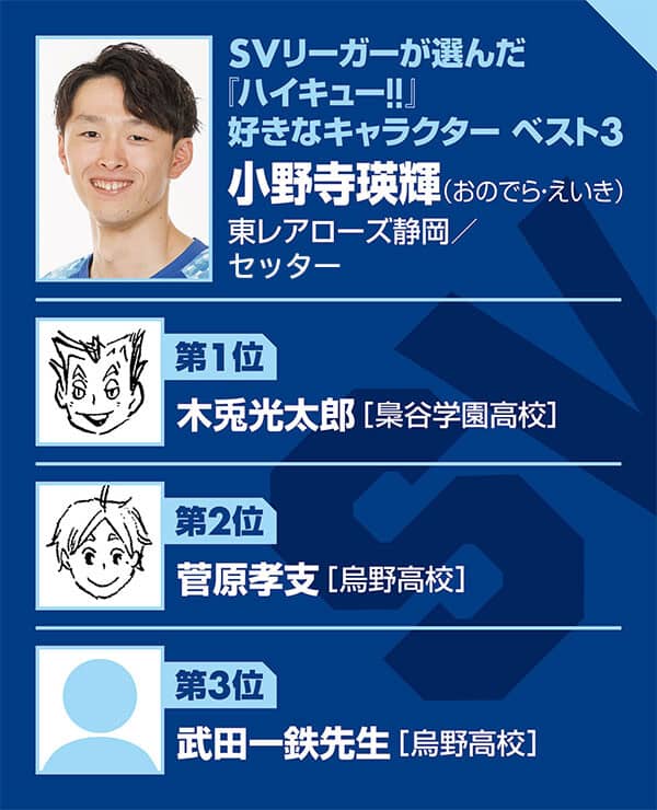 『ハイキュー‼』×SVリーグ コラボ連載(53)東レアローズ静岡 小野寺瑛輝(連載52:東レ静岡の山口拓海は烏野の武田一…