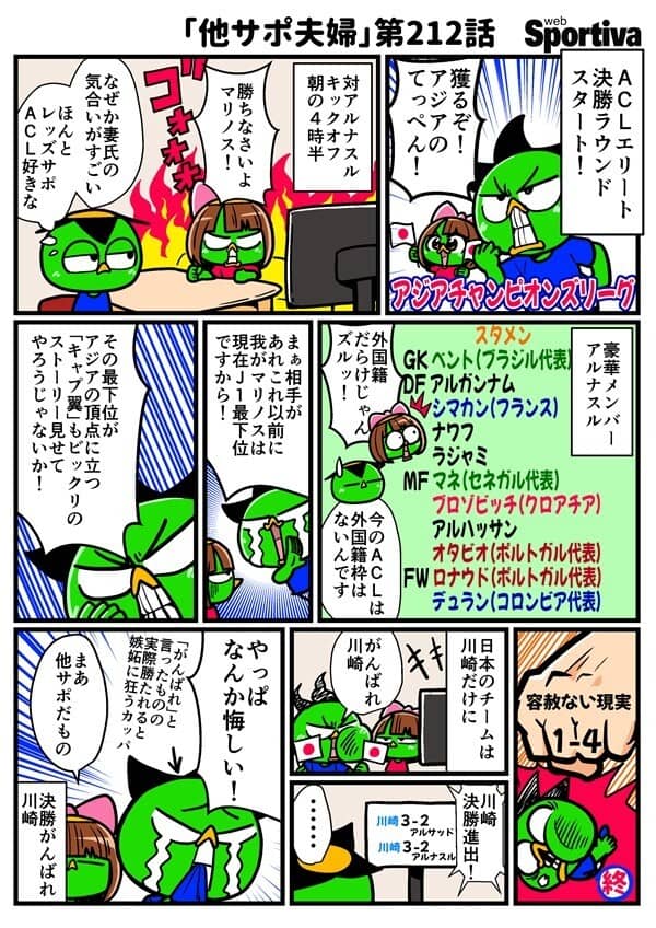 千田純生先生(@chidajunsei3163)の連載『他サポ夫婦』第212話です。