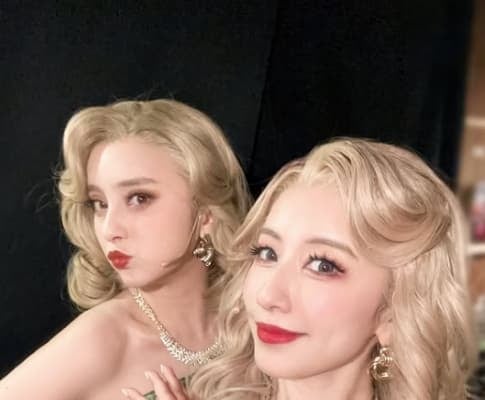 役柄の金髪姿でぬいぐるみを抱えた姿や出演者たちとのツーショットを公開した。