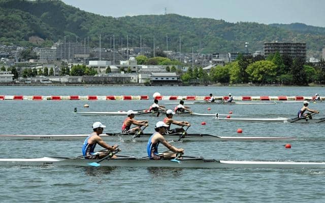 全国から417クルーがエントリー。6日まで、25種目でタイムを競う。初日は6種目があり、県勢は高校女子ダブルスカルの琵琶湖漕艇場BRC、高校男子ダブルスカルの膳所A、彦根東などが予選を突破した。