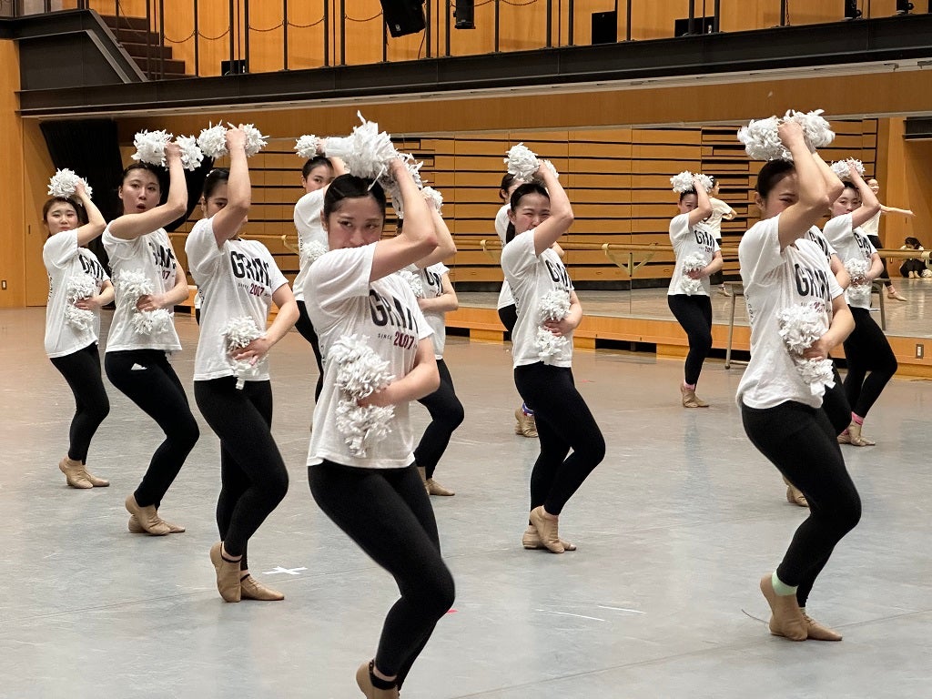 下里珠稀主将(以下、敬称略)「私たちの部に入部を希望する人は、高校時代にチアリーディングやチアダンスをやっていることが多く、そうした人達はソングリーディングという競技をすでに知っていたりします。また、チアリーディングの大会でソングリーディングの部門が同時に行われることも多いので、中にはすでにソングリーディングの大会に出場経験のある人もいます。ちなみに、GRINSの部員のほとんどは、高校時代までにチアリーディングやソングリーディングの経験があって、私もその一人です。