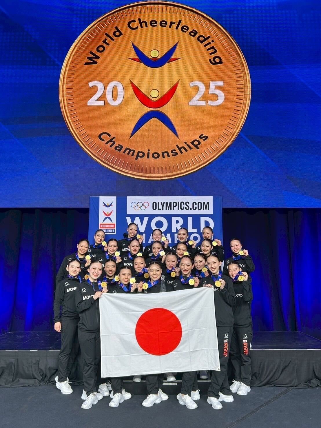日本女子体育大学ソングリーディング部GRINSは、この春にアメリカ、フロリダ州で開催された「2025 ICU世界チアリーディング選手権大会」のジャズ部門で優勝した、世界レベルの強豪チームだ。過去のICU世界チアリーディング選手権大会でも上位に進出した経験が何度もあり、日本でソングリーディングというスポーツを牽引している重要なクラブの1つである。