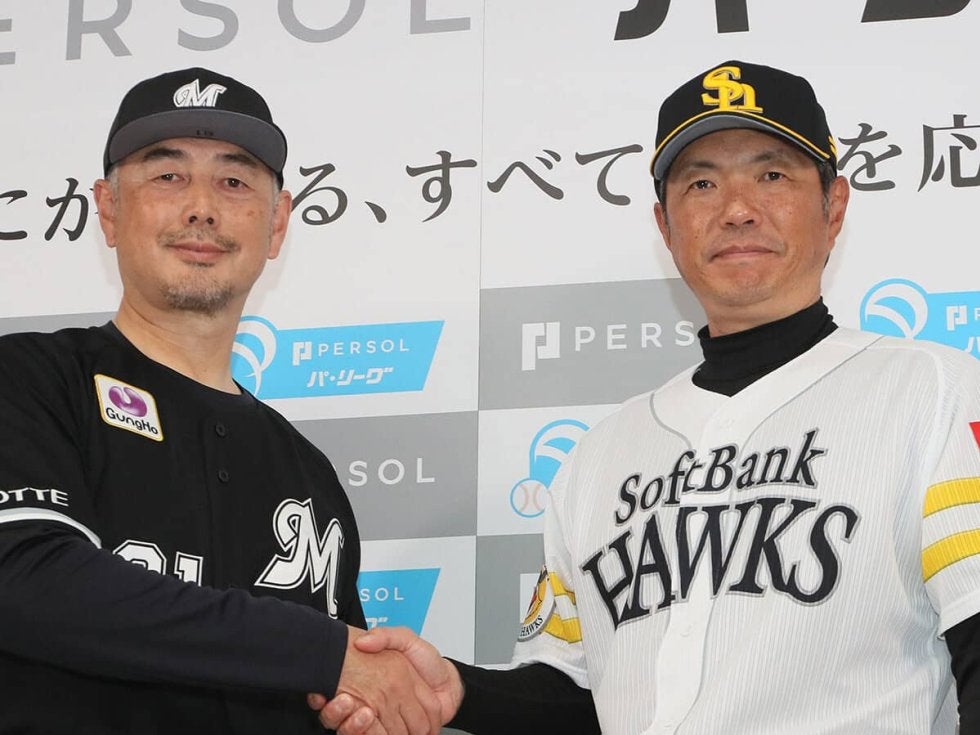 ロッテの吉井監督(左)とソフトバンクの小久保監督