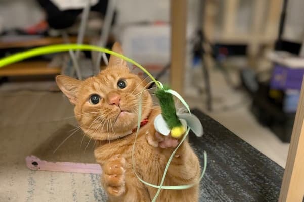 「めっちゃ遊んで欲しそうだったのにいざ遊んだら 「今そういうのはちょっと…」って顔されてて草」と綴り1枚の写真を投稿。愛猫のリドがおもちゃで遊んでいる様子をシェアした。遊んであげたところあまり嬉しそうではなかったという。
