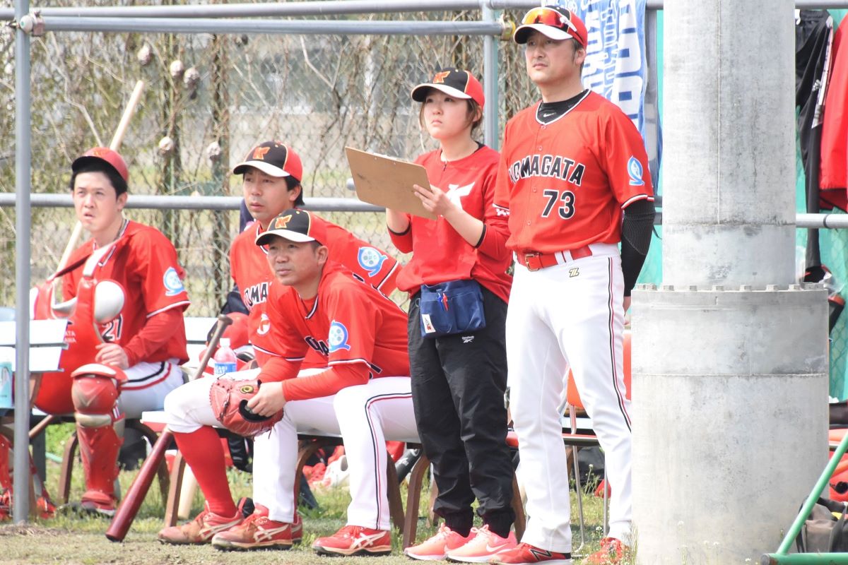 4月20日、B-net/yamagata(山形市)と今年初の実戦となるオープン戦を行った。会場のきらやか銀行総合グラウンド(山形県中山町)には水沢駒形野球倶楽部の応援団が駆けつけていた。地元に愛されるチームならではの光景だ。