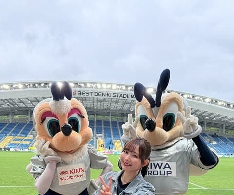 それから「ビビーちゃんとアビーくん お写真撮ってくれました」と紹介するとともに、アビスパ福岡のマスコットたちとの可愛らしいスリーショット写真を投稿した。