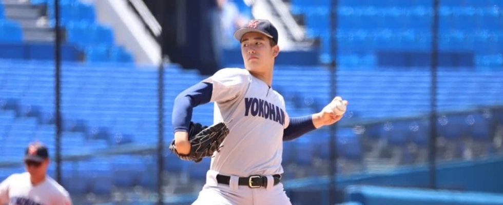 東海大相模との接戦を制した横浜。織田 翔希投手(2年)、片山 大輔投手(3年)が打ち込まれ、4回途中まで4点を失う苦しい試合展開となったが、このピンチを切り抜けたのがエース左腕・奥村 頼人投手(3年)だった。