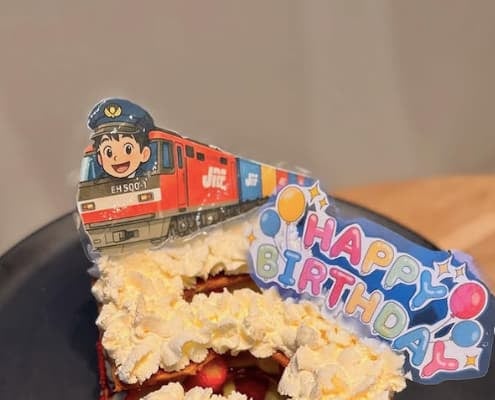 chatGPTを使った息子が電車の運転席に座らせたイラストも作成するなど、息子愛が伝わるケーキでお祝いした。