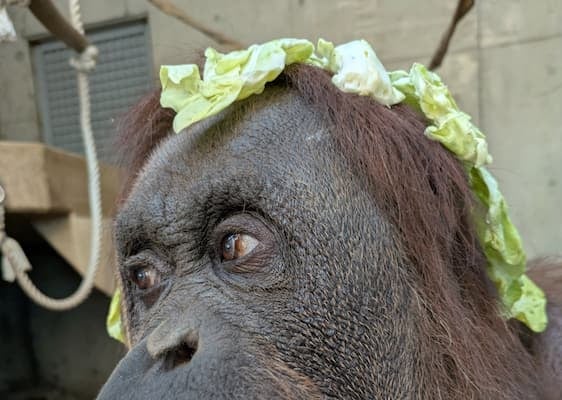 長野県長野市にある茶臼山動物園が5月8日、公式Xで、オシャレだと評判のオランウータン・フジコの最新ショットを公開し、話題を呼んでいる。