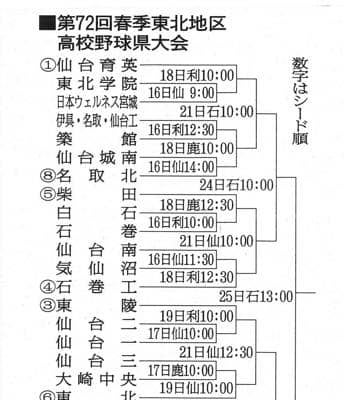 第72回春季東北地区高校野球宮城県大会の組み合わせ抽選会が8日、仙台工であり、県内4地区の予選を勝ち上がった25チーム…