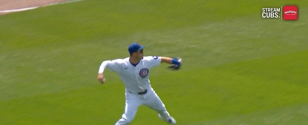 カブスの鈴木誠也外野手が「3番・ライト」でジャイアンツ戦に先発出場。初回の守備では強肩を発動。現地中継も取り上げる一幕があった。