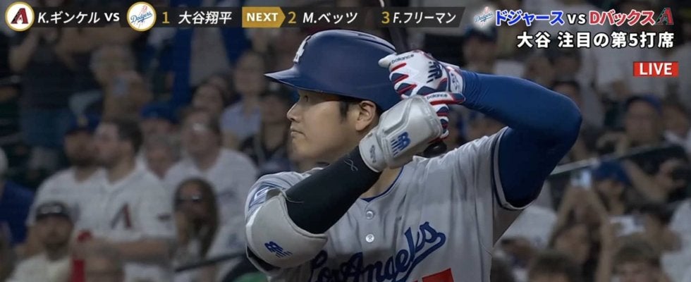 確かに大谷の本塁打はダイヤモンドバックスの4番手ギンケルの投じたやや外角寄りの95.9マイル(約154.3キロ)のストレートをしっかりと引き付け、見事に捉えたもの。川上氏の指摘通り、強引に引っ張るのではなく、センター方向を中心に「出塁すること」「ボールをしっかりと捉えること」を意識したバッティングに見える。