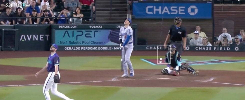 大谷は打った瞬間にホームランを確信。バットを放り投げながら両手を広げた確信バンザイポーズで喜びを表現。球速度113.0マイル(約181.9キロ)、飛距離426フィート(約129.8メートル)とスピード、飛距離共に完璧で、MLB30球場全てでホームランとなる文句なしのアーチとなった。