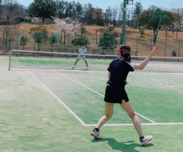 小悪魔チックな言葉をのせた彼女。動画は後衛としてコートに立ち、”エグい”コースへのショットを繰り出すシーンが見られる。
