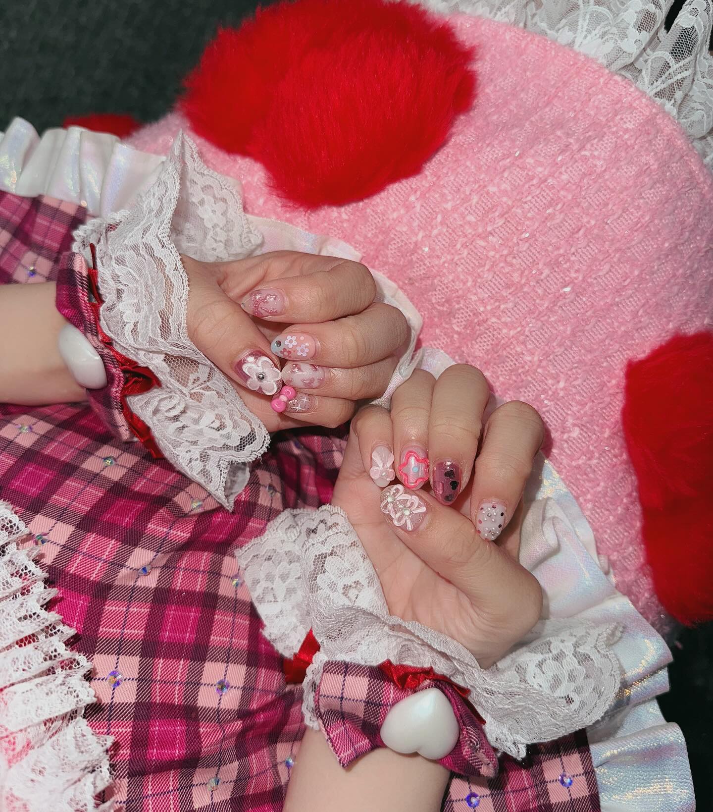 可愛い自撮りショットとともに、花やリボンのデザインが施されたネイルを披露し、ファンを喜ばせた。