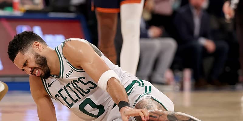 ニューヨーク・ニックスとの「NBAプレーオフ2025」カンファレンス準決勝に挑んでいるセルティックス。13日にホームでの第4戦を迎えたなか、第4クォーターの残り3分にテイタムは倒れ込み、自力で歩くことができない状況に。そのままコート外へと離脱し、車いすで戻っていく様子が映されていた。