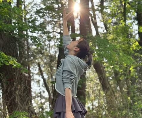 緑の葉っぱから照らされた太陽に手を掲げ「届けーーーっ」と綴り、ドラゴンボール・孫悟空の必殺技「元気玉」に見立てた写真を披露した。