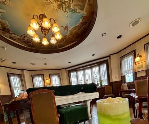 「忍野八海の近くの喫茶店がすごかった!!」という言葉とともに、オシャレな喫茶店での写真を投稿した。