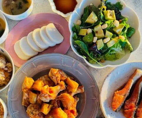 子供達の習い事の待機中、美味しそうな料理が載った雑誌を見つけたが、レシピを確認しながら作るには時間がかかりそうだと感じたとのこと。しかし、自宅の冷凍庫に骨付きチキンがあることを思い出し、雑誌に映る写真を見てひらめいた、骨付きチキンと焼きいもの一品料理を作ったとのこと。「時短で簡単‼️ご飯にも合うし美味しかった✨」と綴った。
