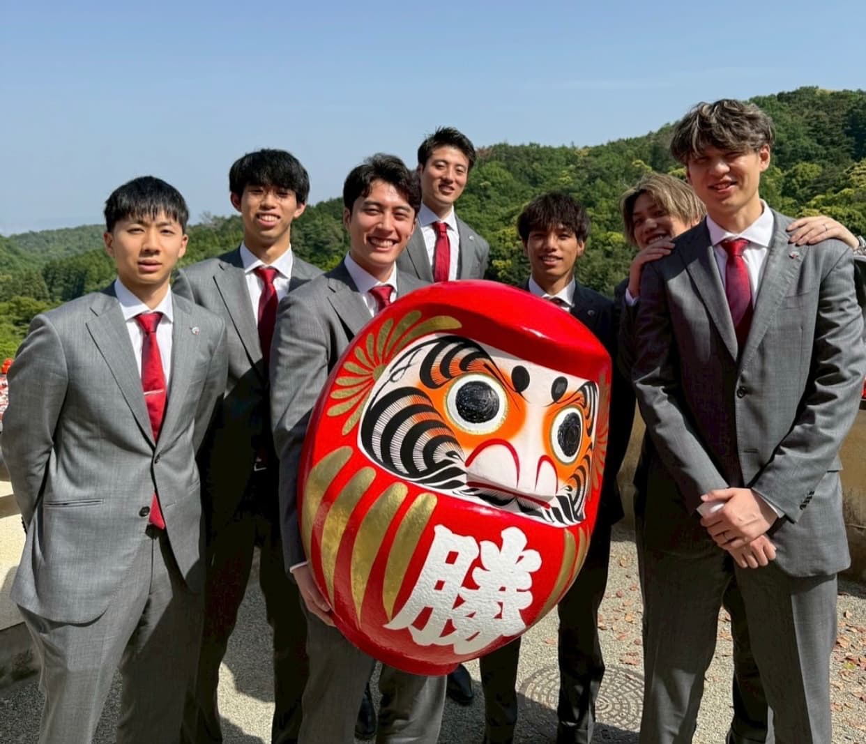 Vリーグ開幕前にチームのメンバーで訪れ、目が入っていない"勝ちだるま"を持ち、Vリーグ優勝祈願の投稿をしていた髙橋。所属しているサントリーサンバーズが見事初代王者になったことで両目を黒く塗りつぶされた"勝ちだるま"を持ち、スーツ姿で御礼参りをした様子。