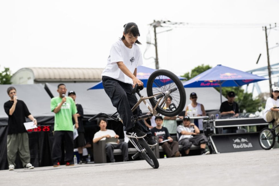 国内はもちろんのこと海外でも好成績を残しており、BMXフラットランド界において世界最高レベルと言われる日本を代表する本村果鈴。ここ最近では出る大会負けなしと言っていいほど強さを見せている彼女は、今回も長い手足を活かした豪快なルーティンで見事なライディングを見せた。
