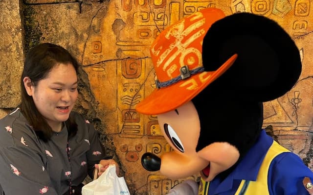 今回は、ミッキーとの再会やゴンドラ、トランジットスチーマーライン、さらには人気ショー「ビッグバンドビート」も満喫。念願だった“カルダモン&ミート味のパン”や“豚角煮のアップルマスタードソース”も堪能し、大満足の一日となったようだ。