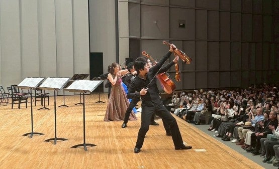 「八千代のコンサートでは、ビオラの古屋くんが新しい一芸を発案してくれました」と綴り、多数の写真を公開した。