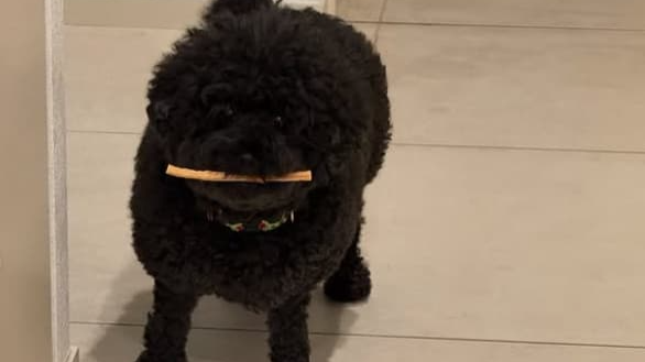 #愛犬とのくらし#おやつのガム#黒ぷーさんと繋がりたい」と綴り、最新ショットを投稿。