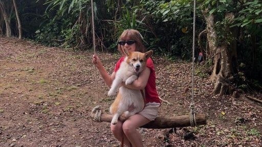 「少し前の話になりますが、バルーが14歳になりました」と綴り、最新投稿をアップ。愛犬とブランコに乗り笑顔を見せるショットなど、複数枚の写真を公開した。
