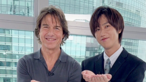 ハリウッド俳優のトム・クルーズとZIPポーズをとり、嬉しそうな表情の阿部が印象的だ。