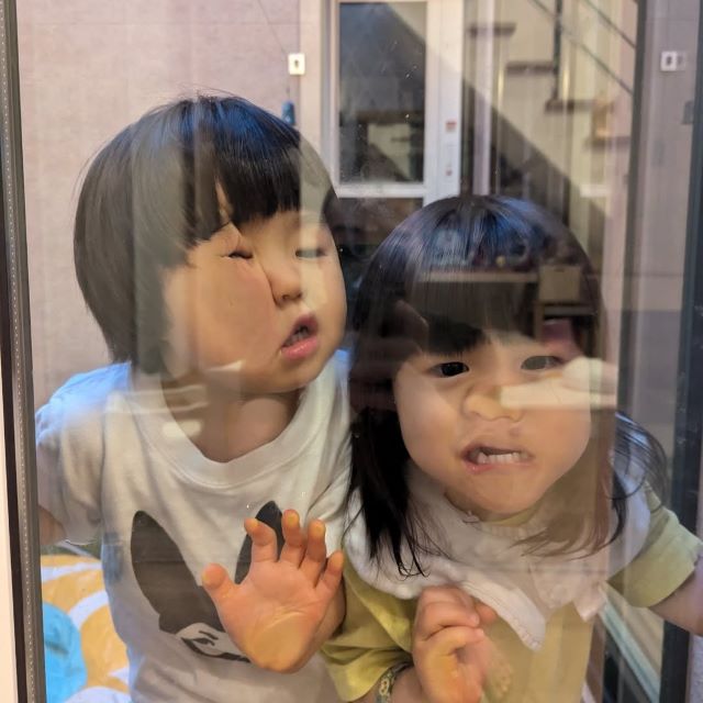 アキナ山名家のカオスな朝。ガラス越しに炸裂する年子エネルギー | 話題の投稿
