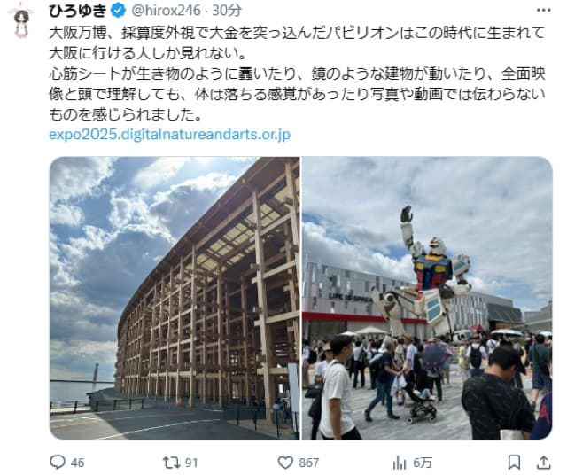 自分の目で見て感じることの大切さ。ひろゆき、万博での写真を公開! | 話題の投稿