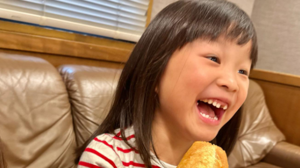1枚目は妹・ひーちゃんがパンにかぶりつくショット、2枚目はバゲットにかぶりつかんとしているののちゃんの写真だ。