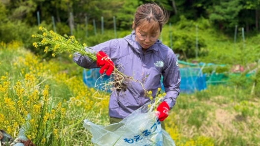 「先日、片品村で練習後に外来種であるハルザキヤマガラシの駆除のお手伝いをしました。美しいお花に見えますが、この植物は外来種で日本在来種の植物を駆逐する恐れがあり、日本の侵略的外来種ワースト100に選定されています。」と綴り、自身が写った写真数枚をアップ。